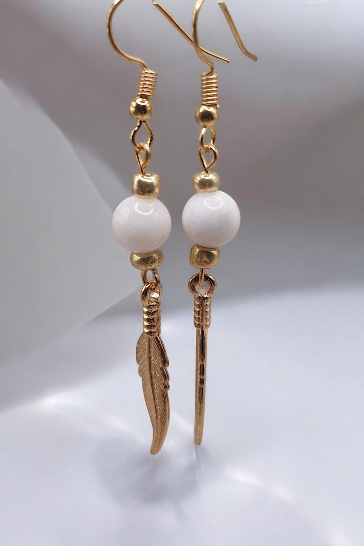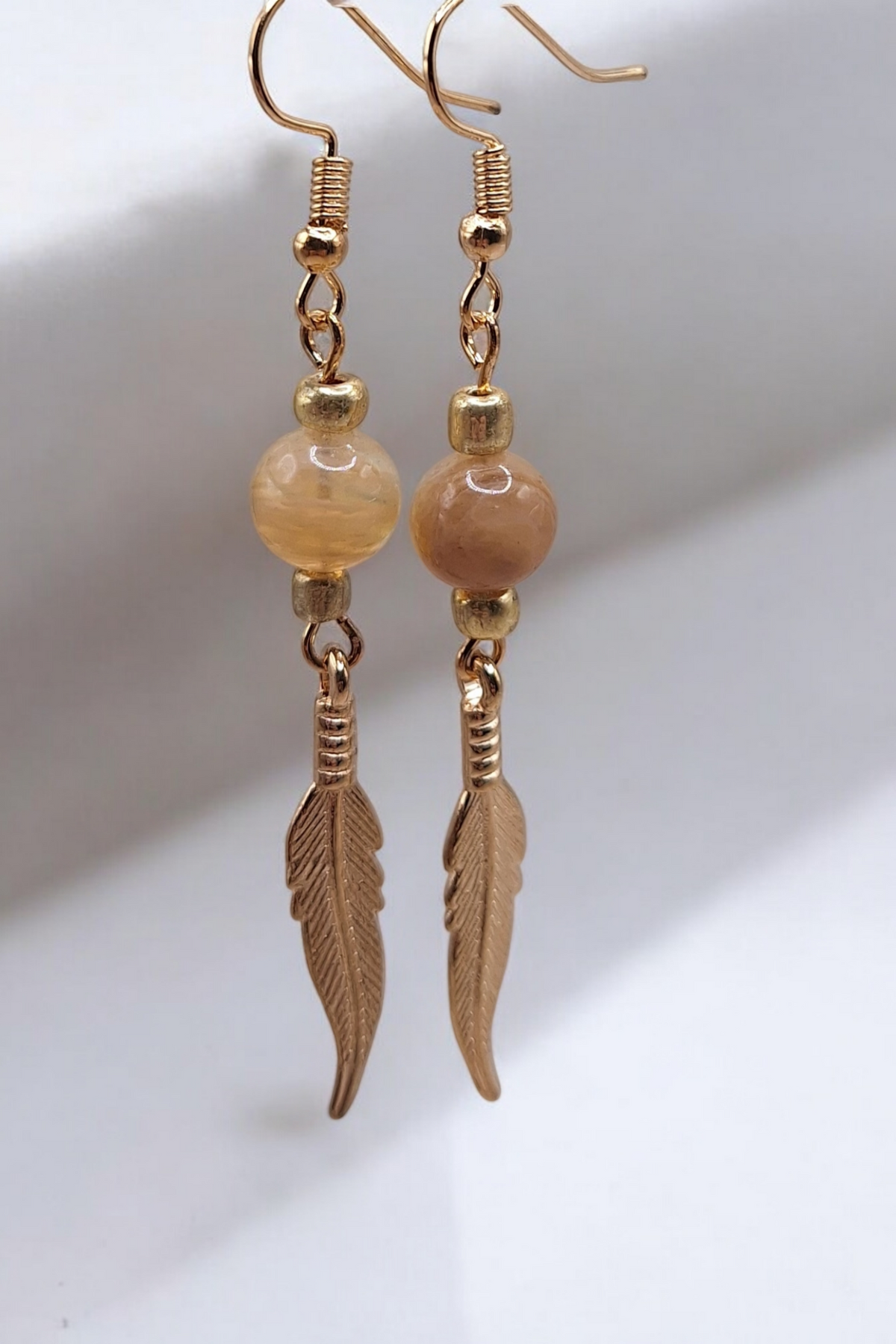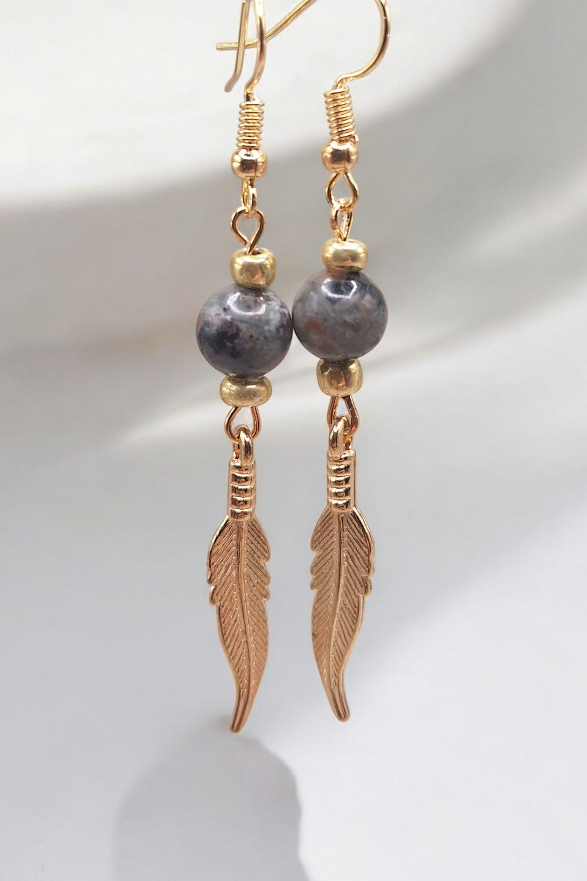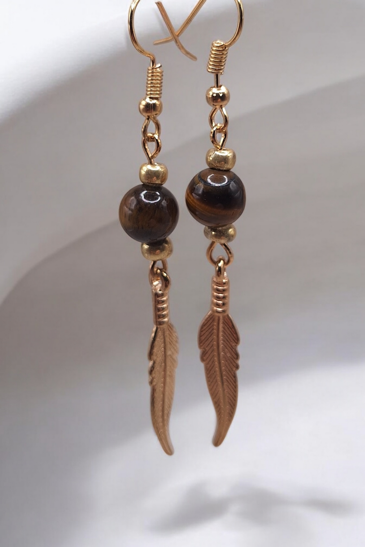 Oorbellen golden feather x gemstone