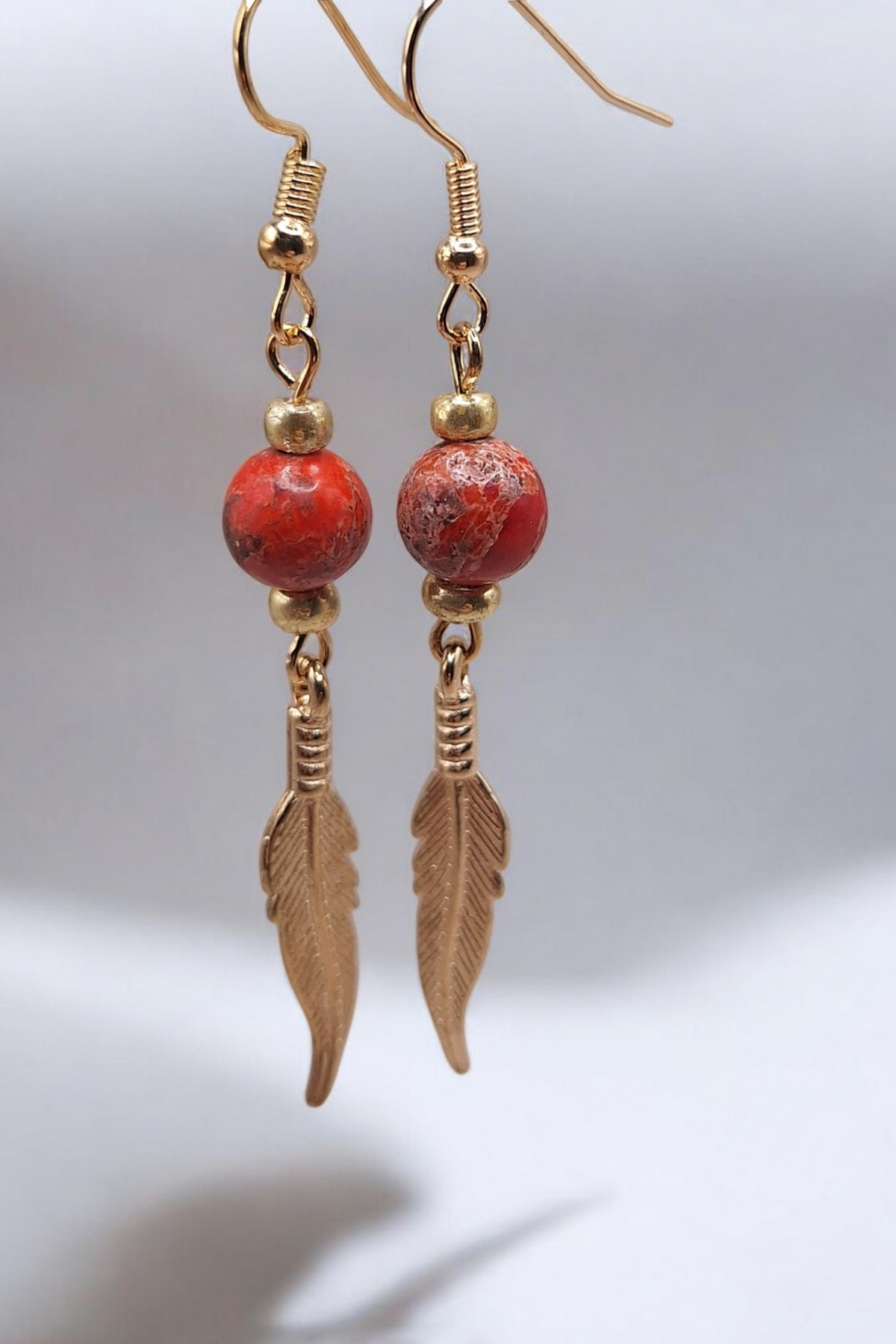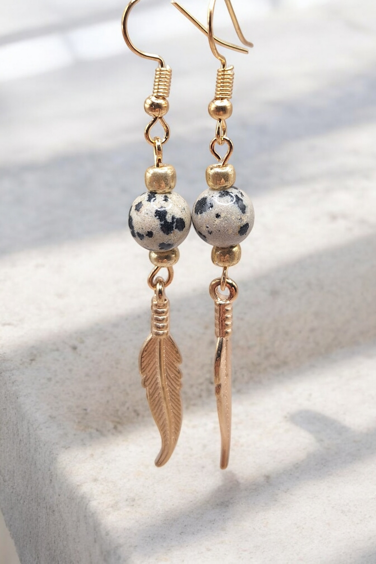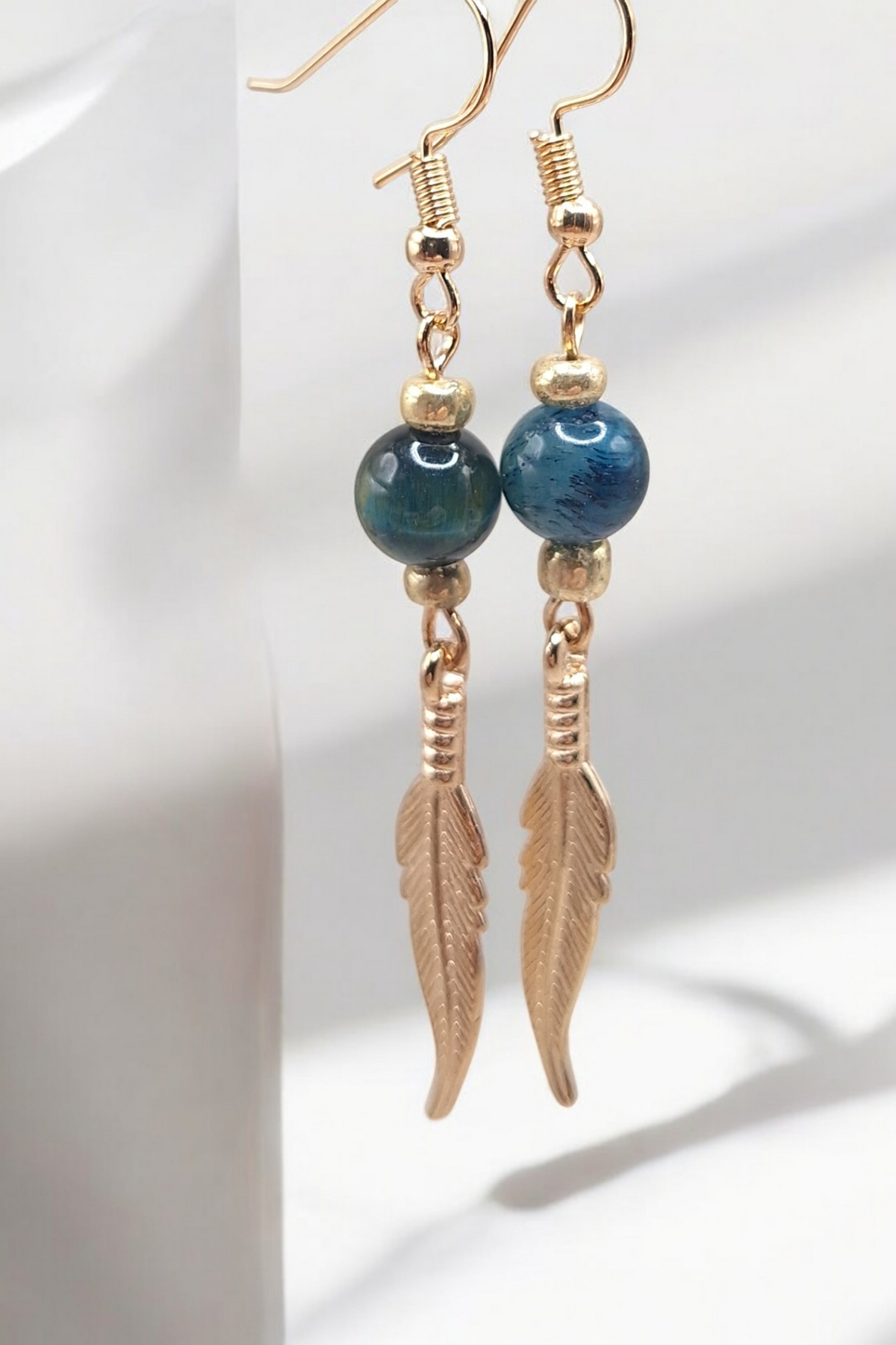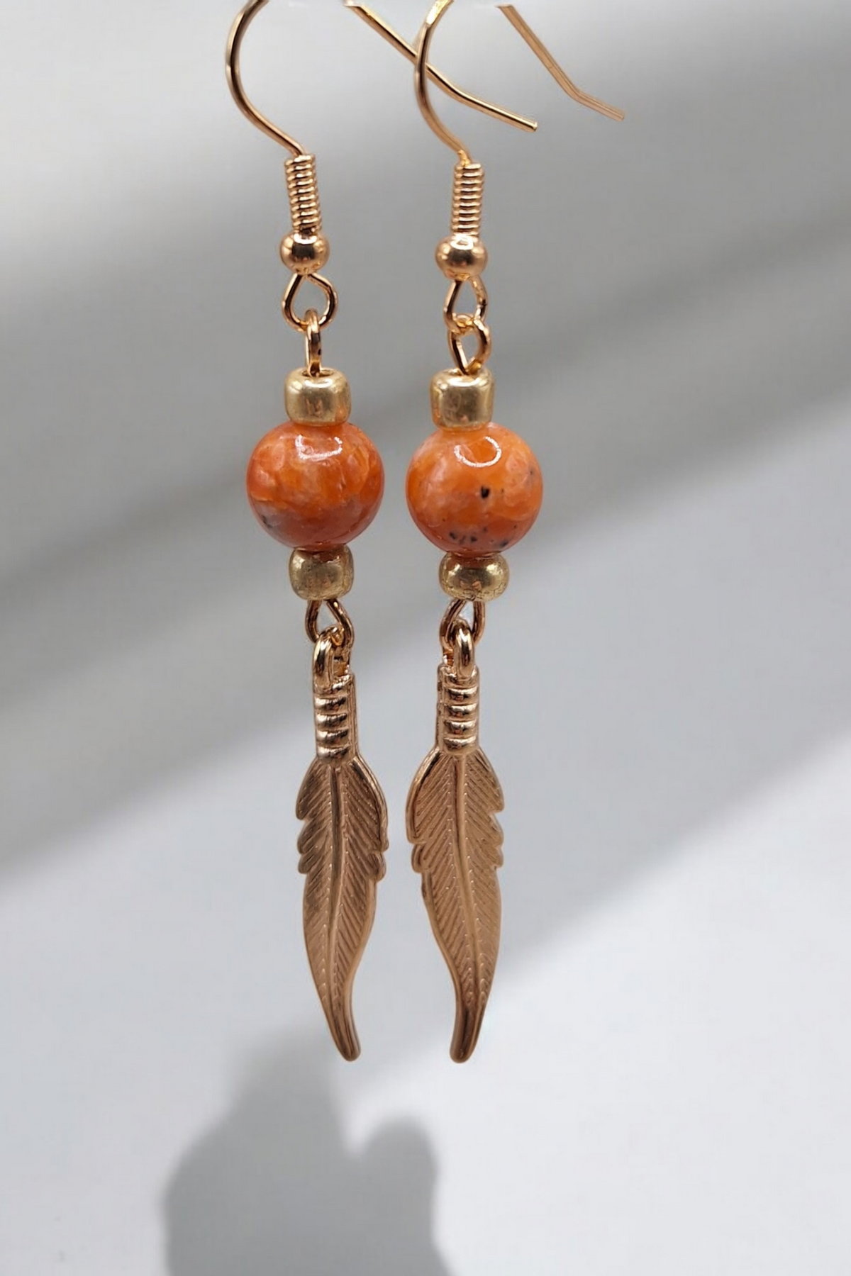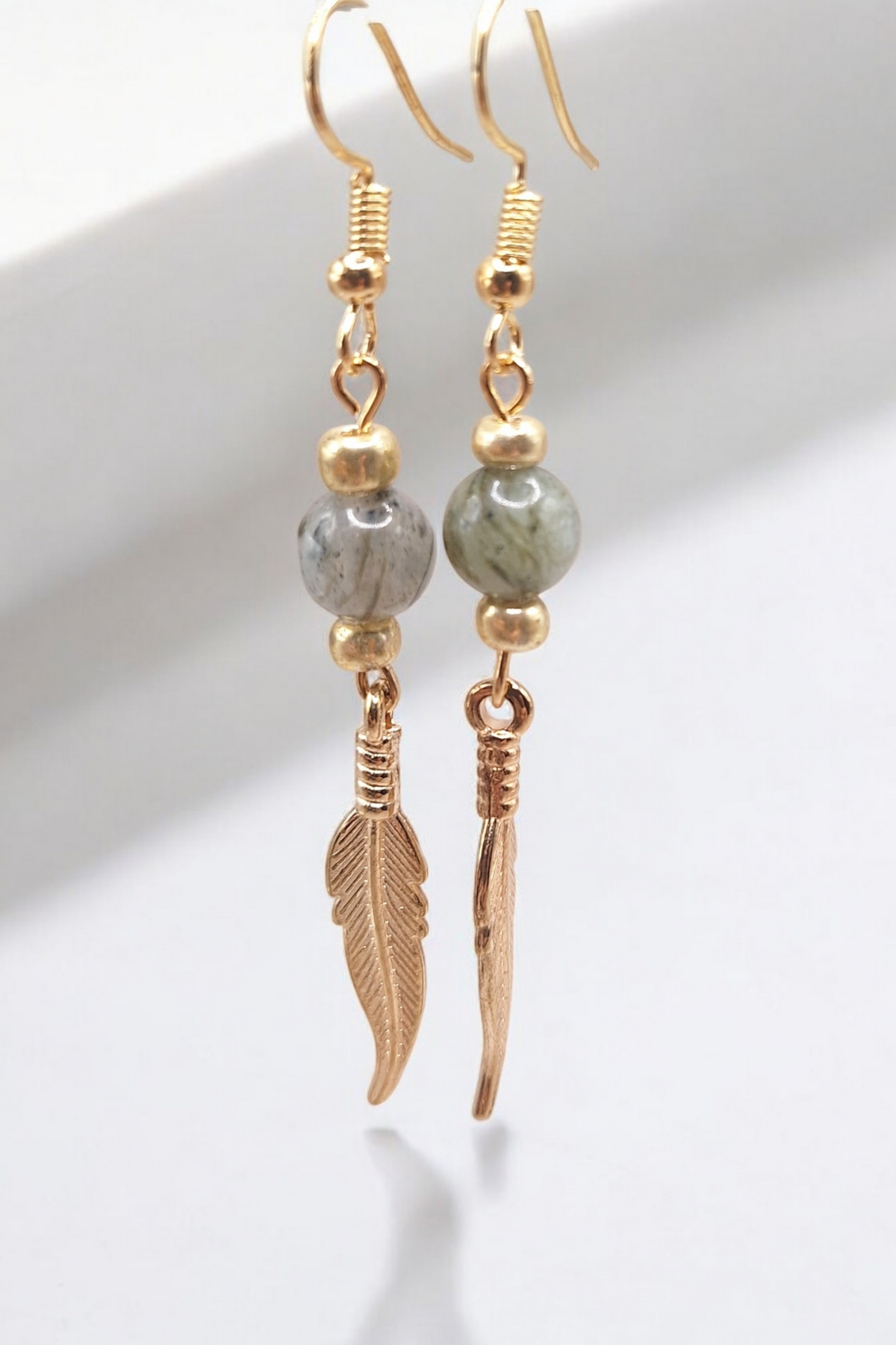 Oorbellen golden feather x gemstone