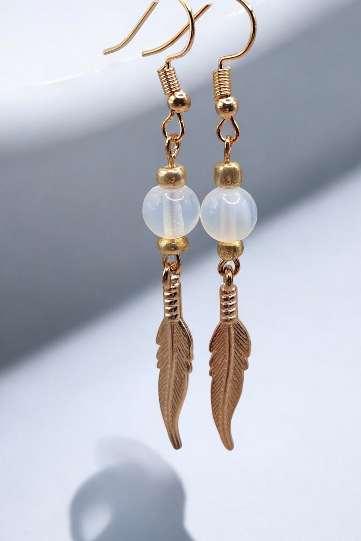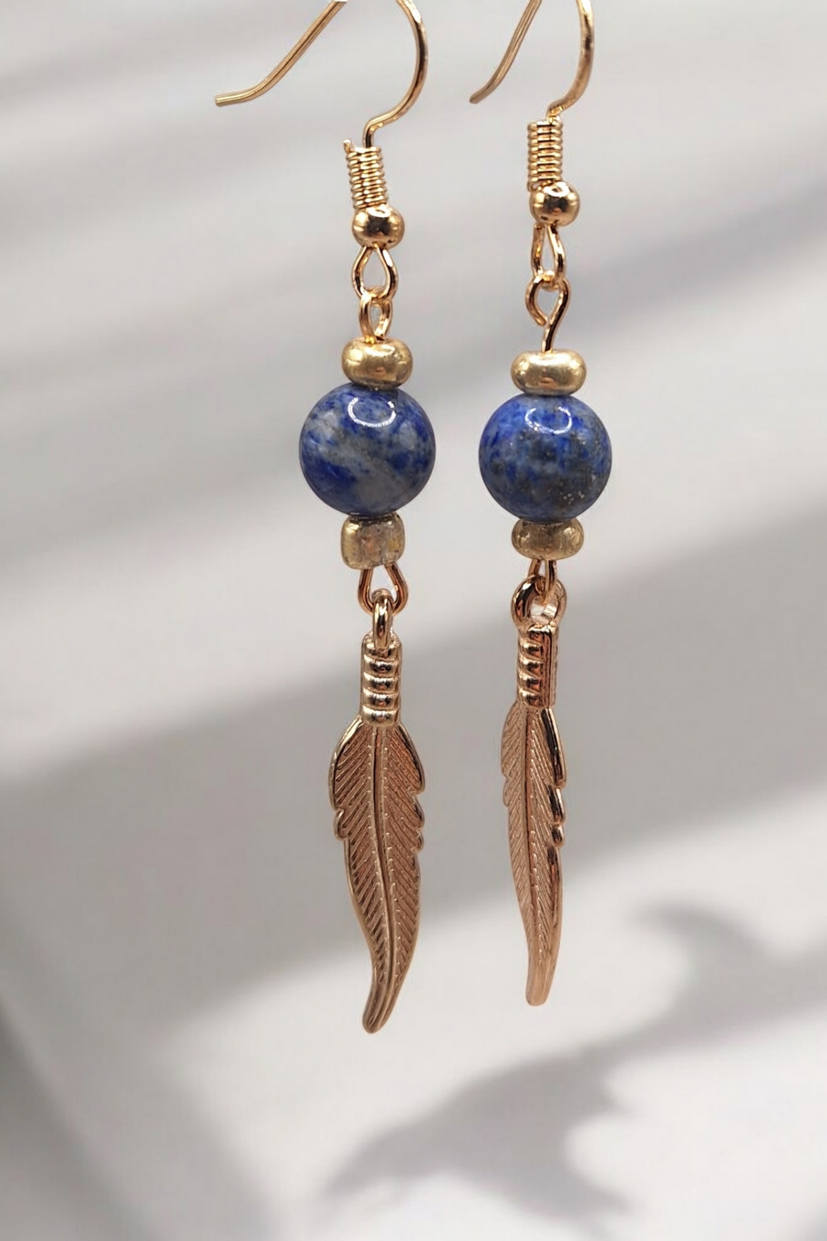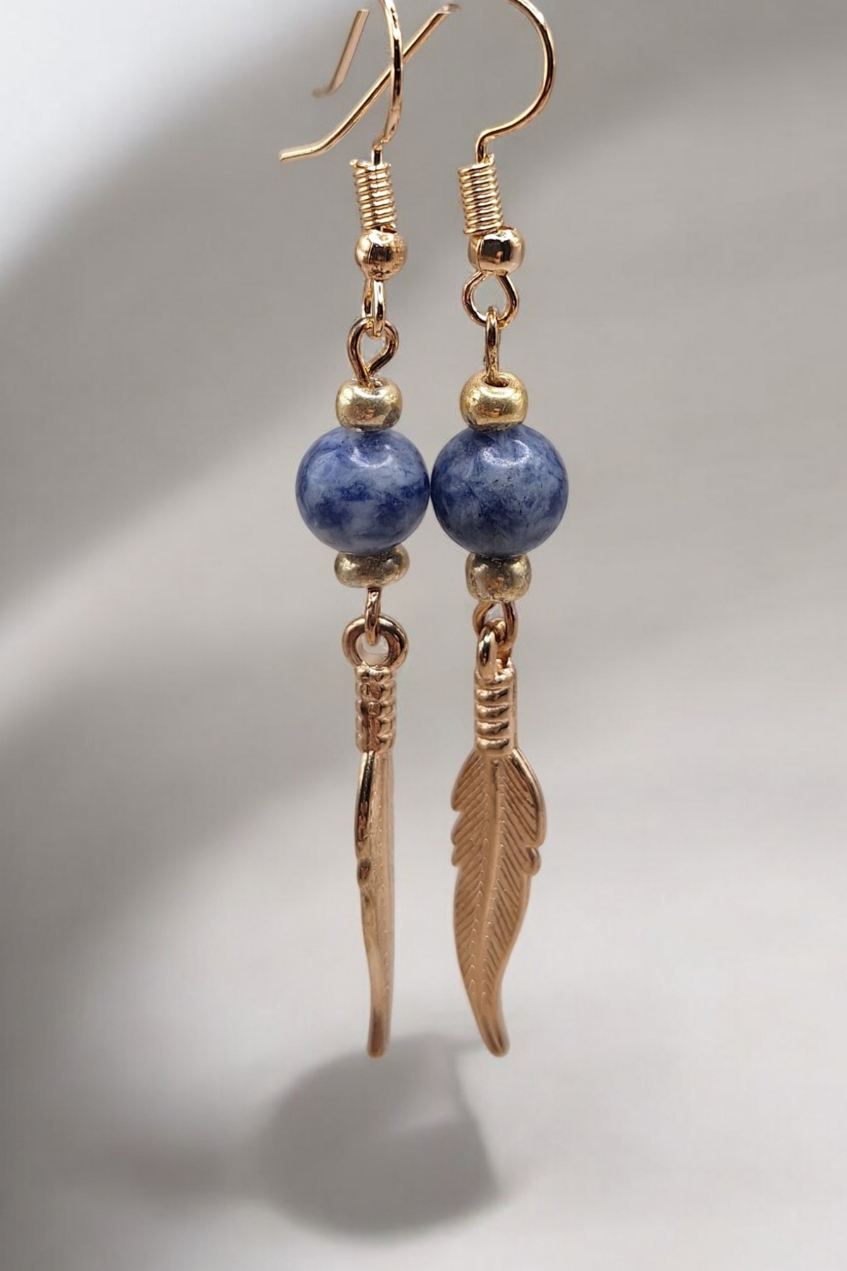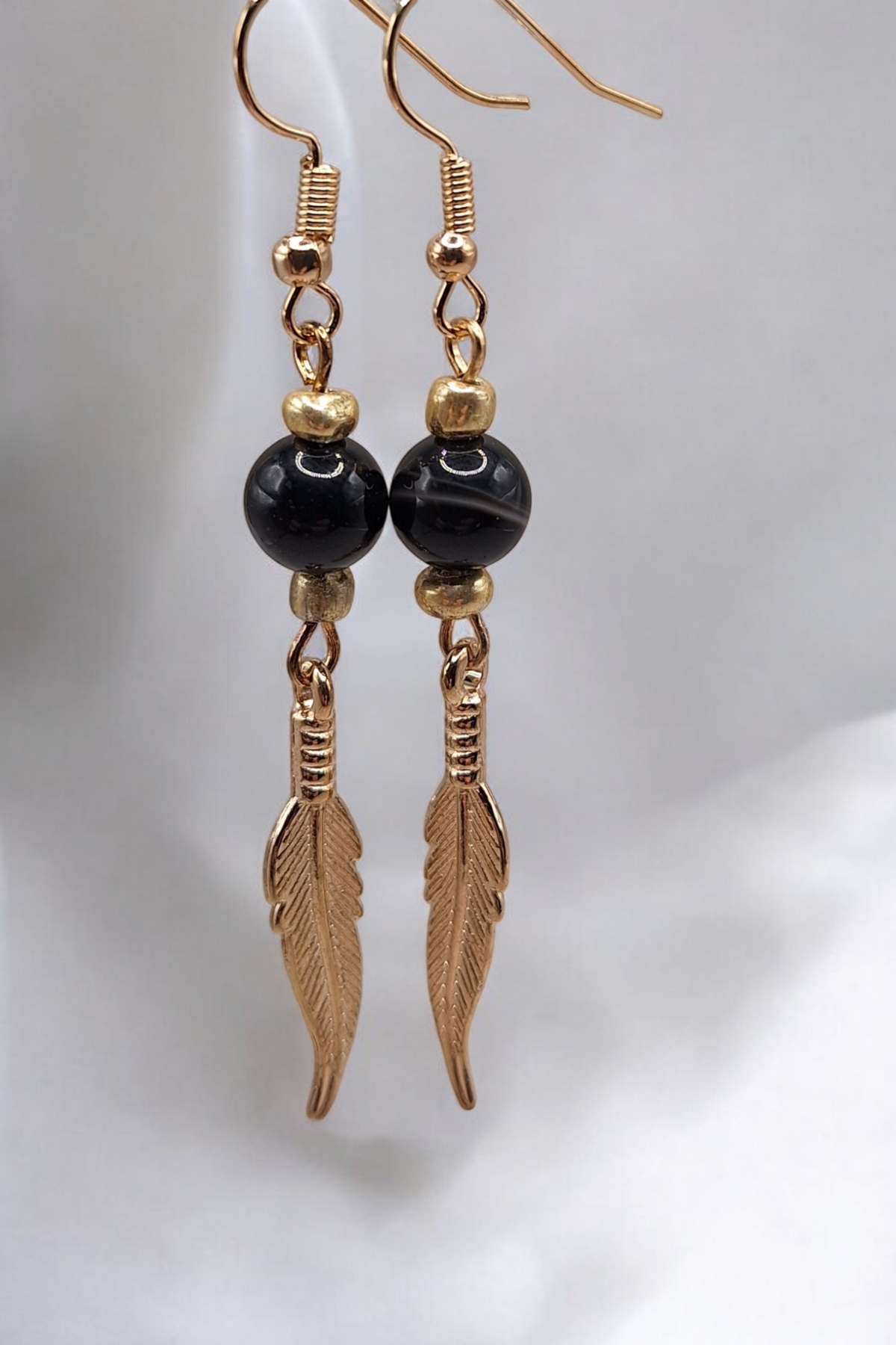 Oorbellen golden feather x gemstone
