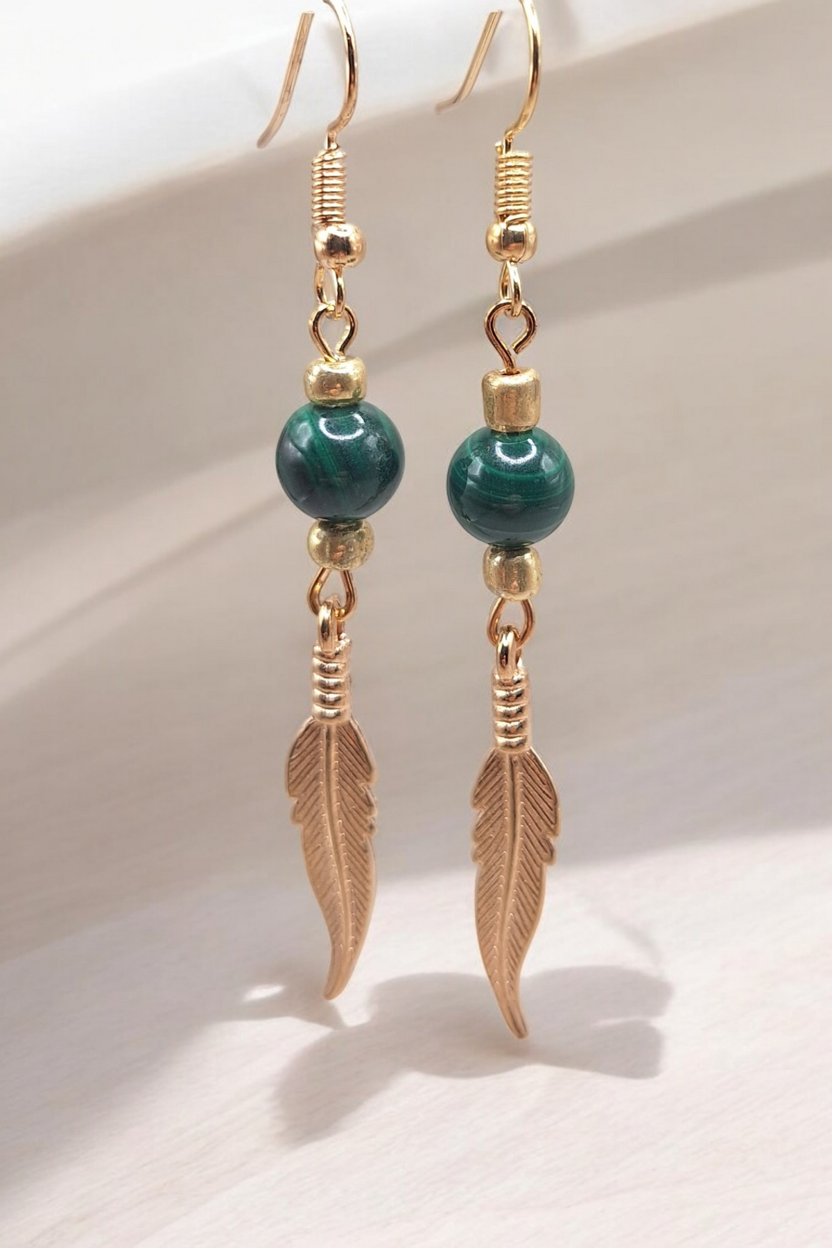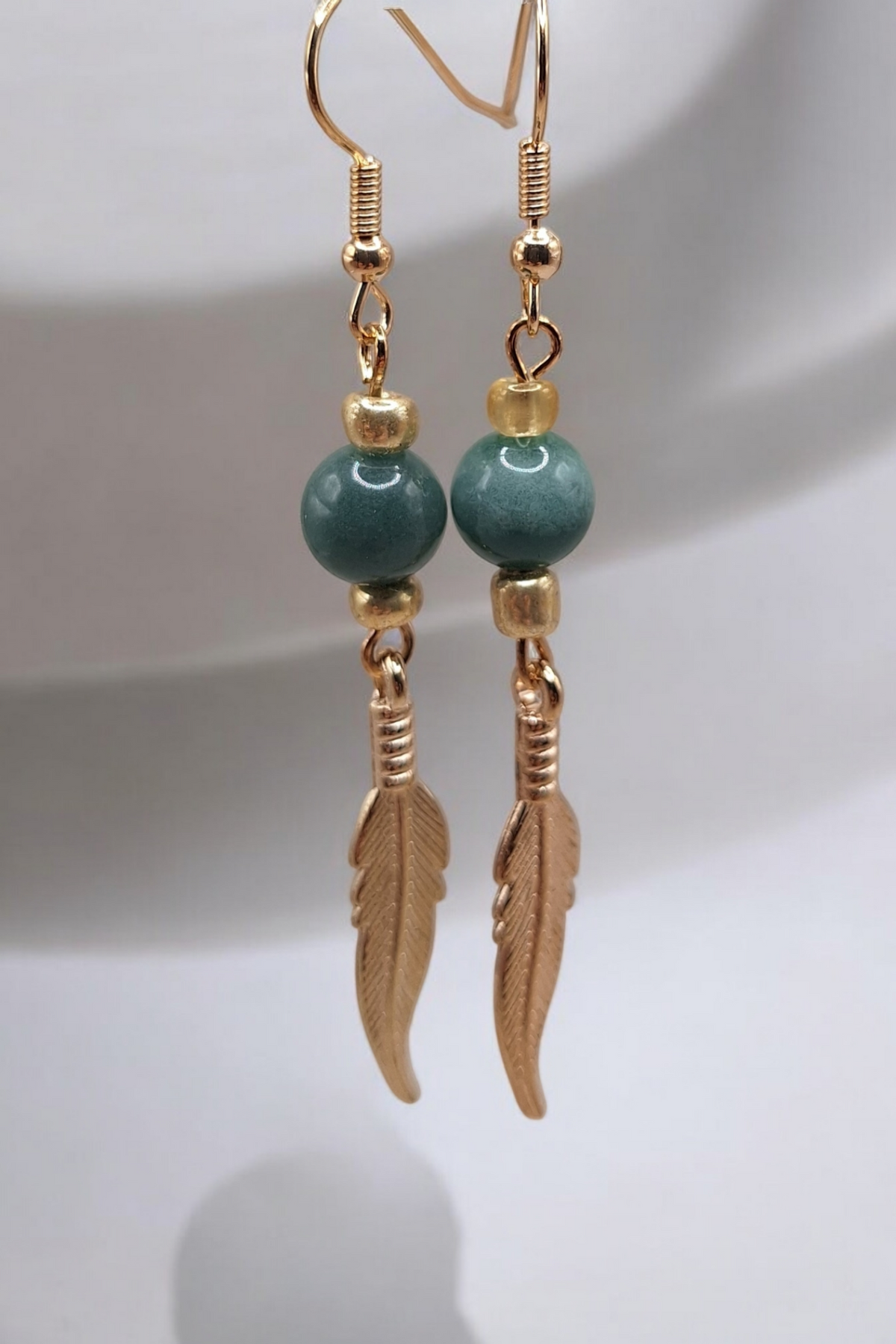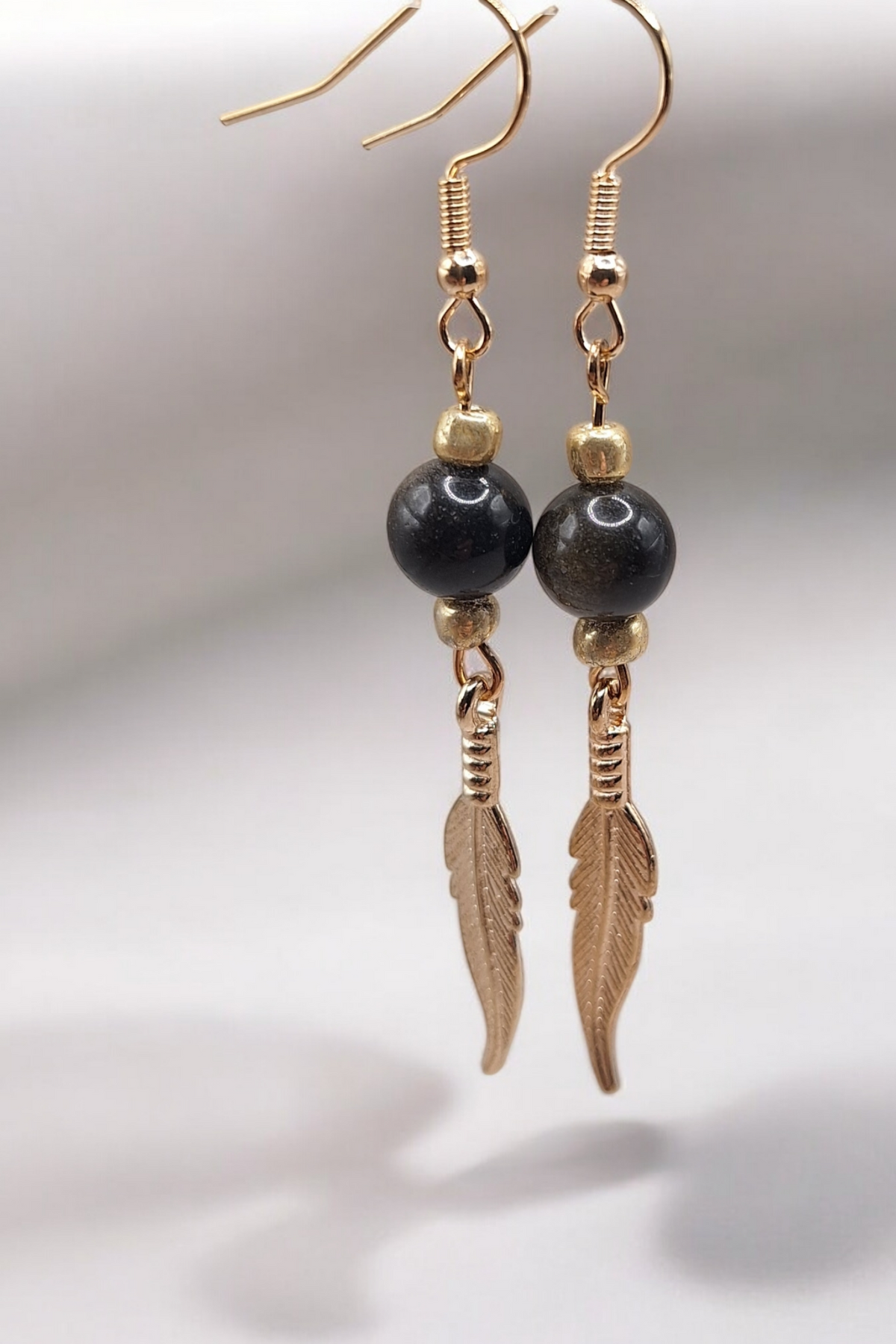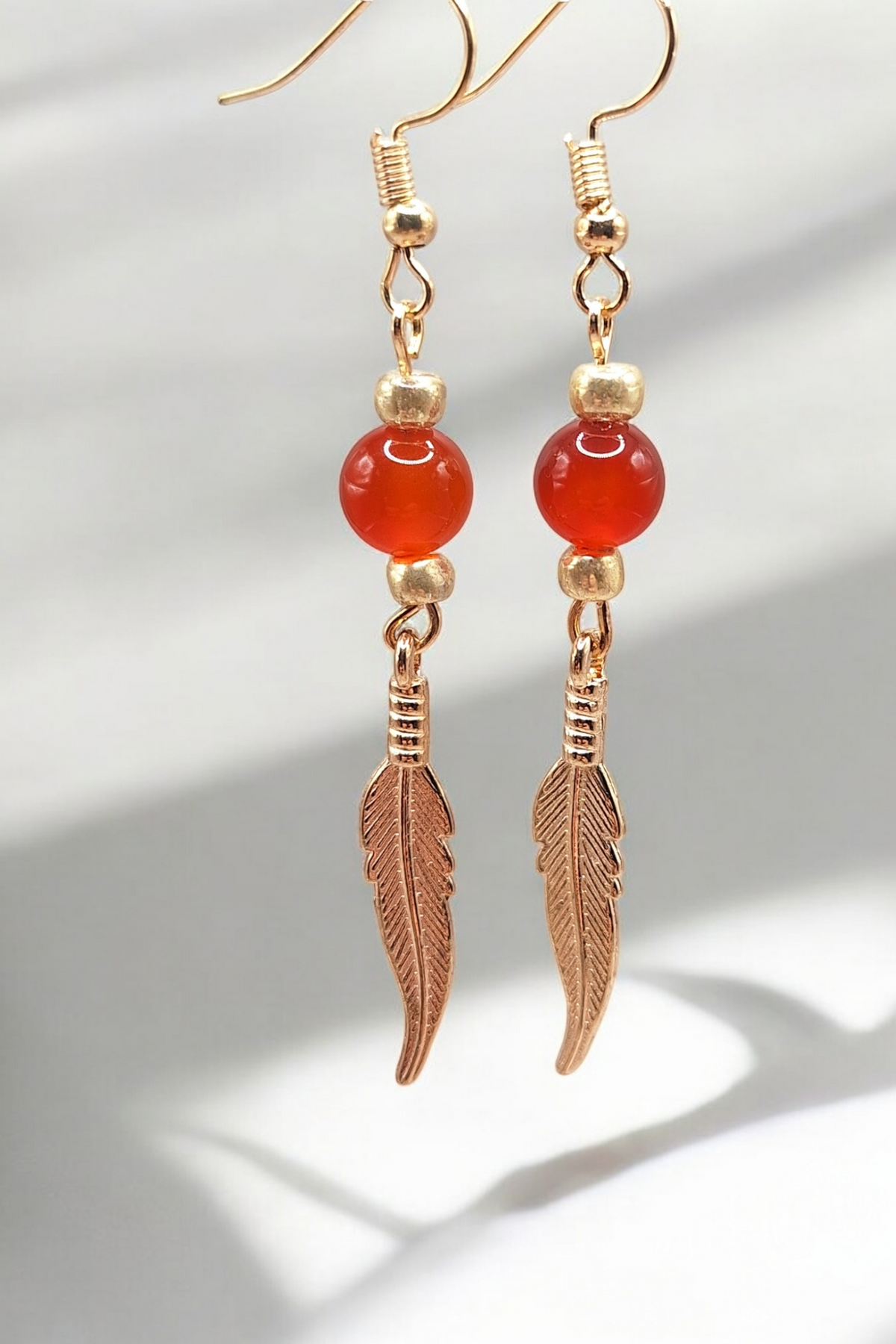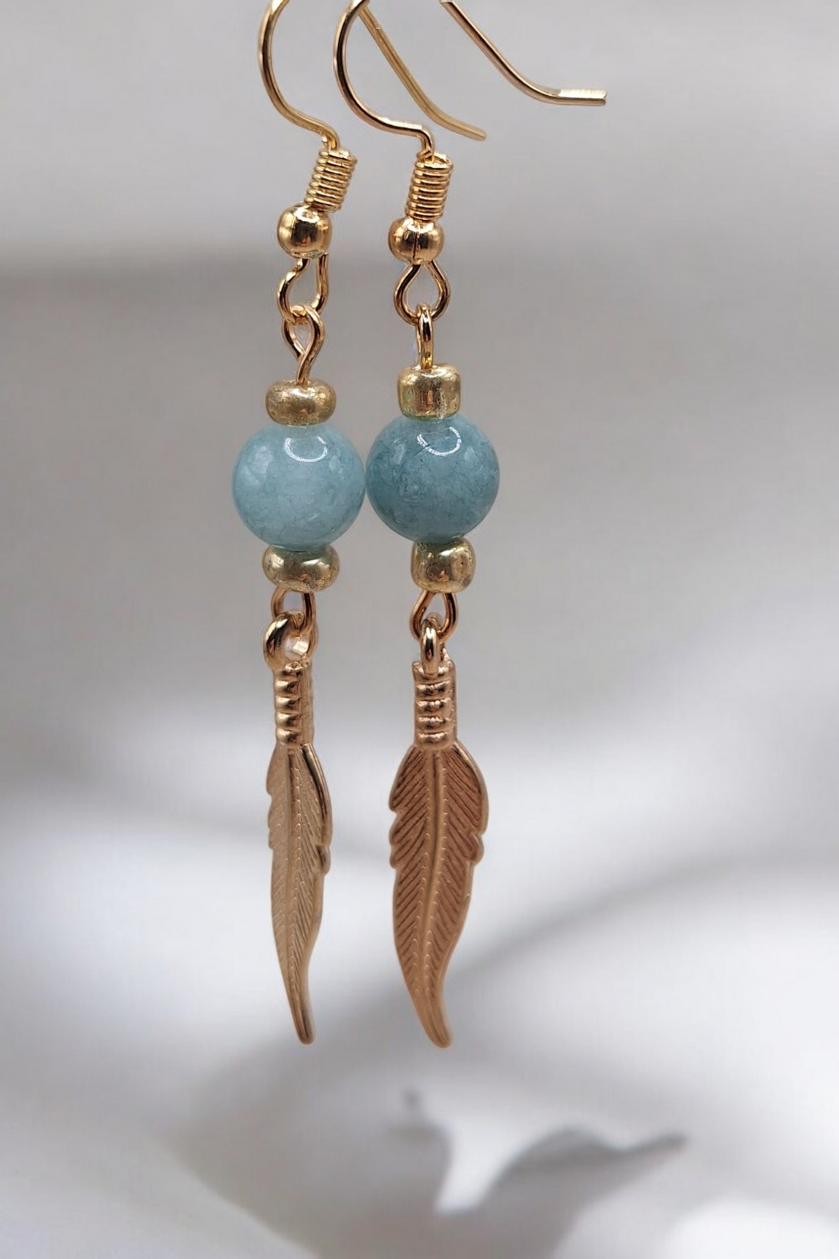 Oorbellen golden feather x gemstone