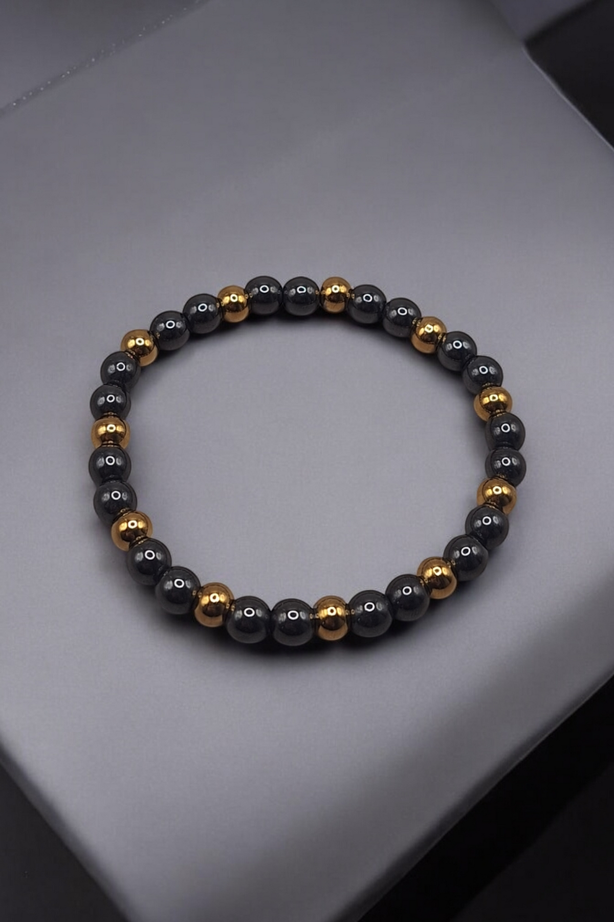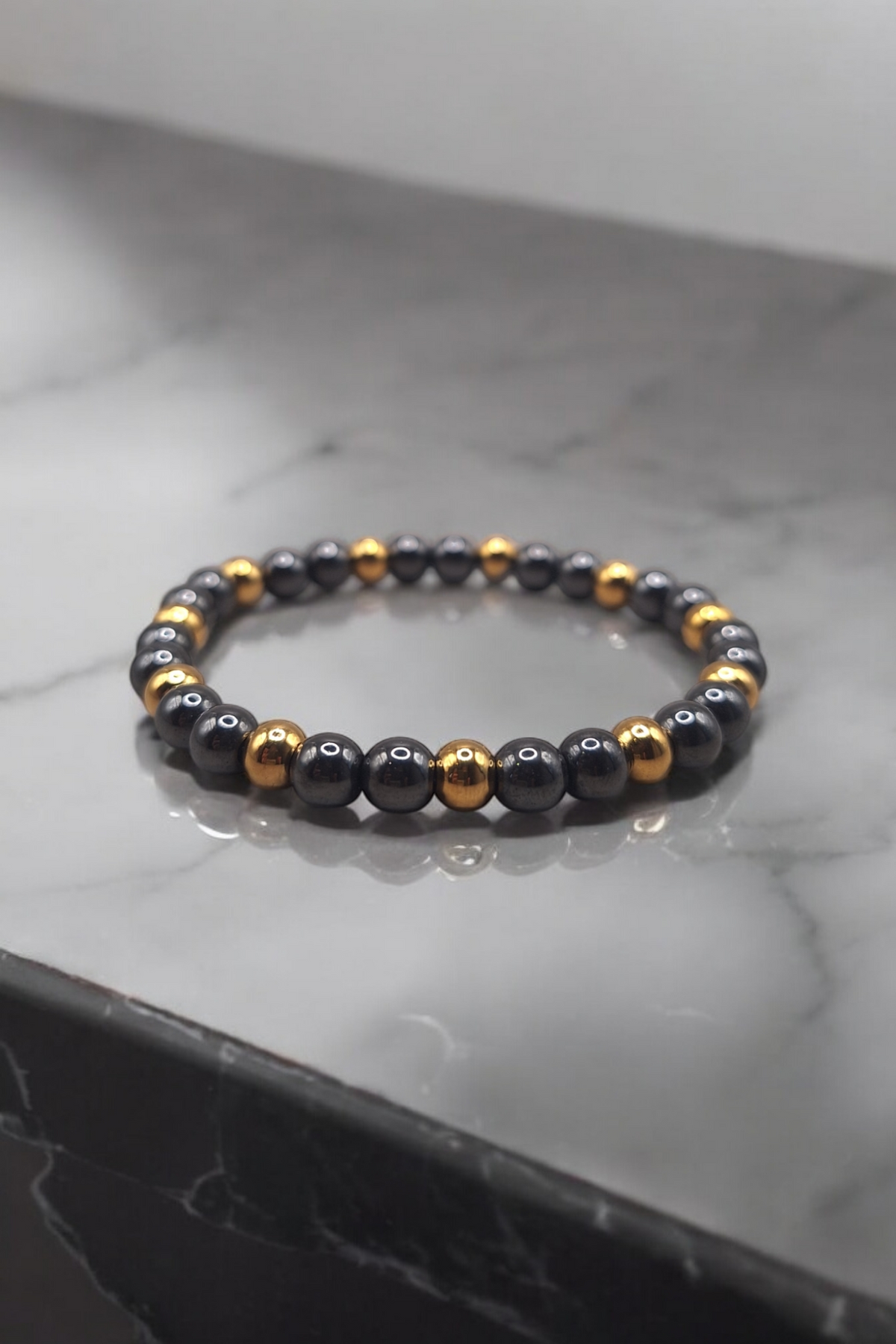 Indulge in luxury with our Haematite bracelet. Designed for the bold and stylish, this bracelet boasts a heavy, hematite stone and gold-toned stainless steel combination. With its 6mm stones and custom sizing, this bracelet exudes a sense of elegance and strength. Perfect for both men and women.