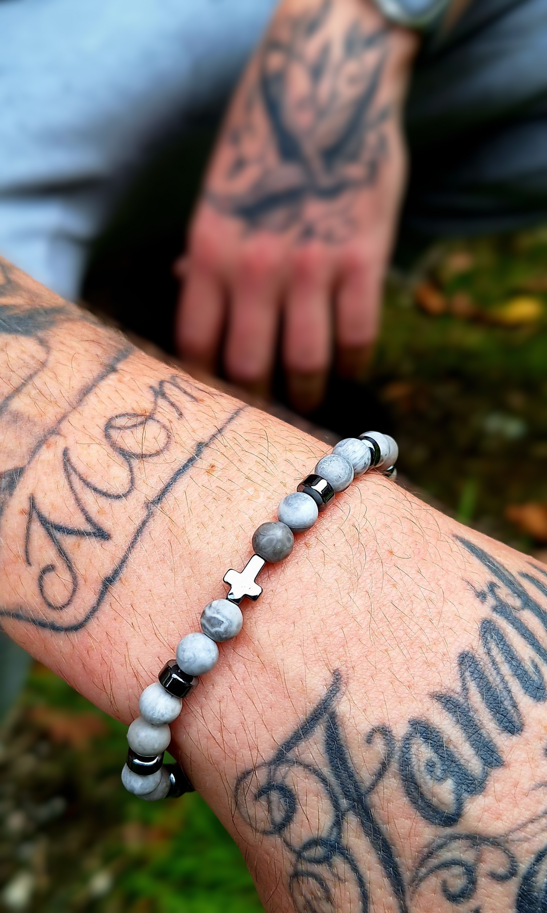 De Moonchrist armband combineert stoer design met betekenisvolle details. Het kruisje als accent geeft een tijdloze uitstraling, terwijl de hematiet accenten en Picasso-jasper kralen zorgen voor een unieke, natuurlijke touch. Een stevige 6 mm dikte en een duurzame stainless steel sluiting. Perfect voor wie op zoek is naar een opvallend en karaktervol sieraad.