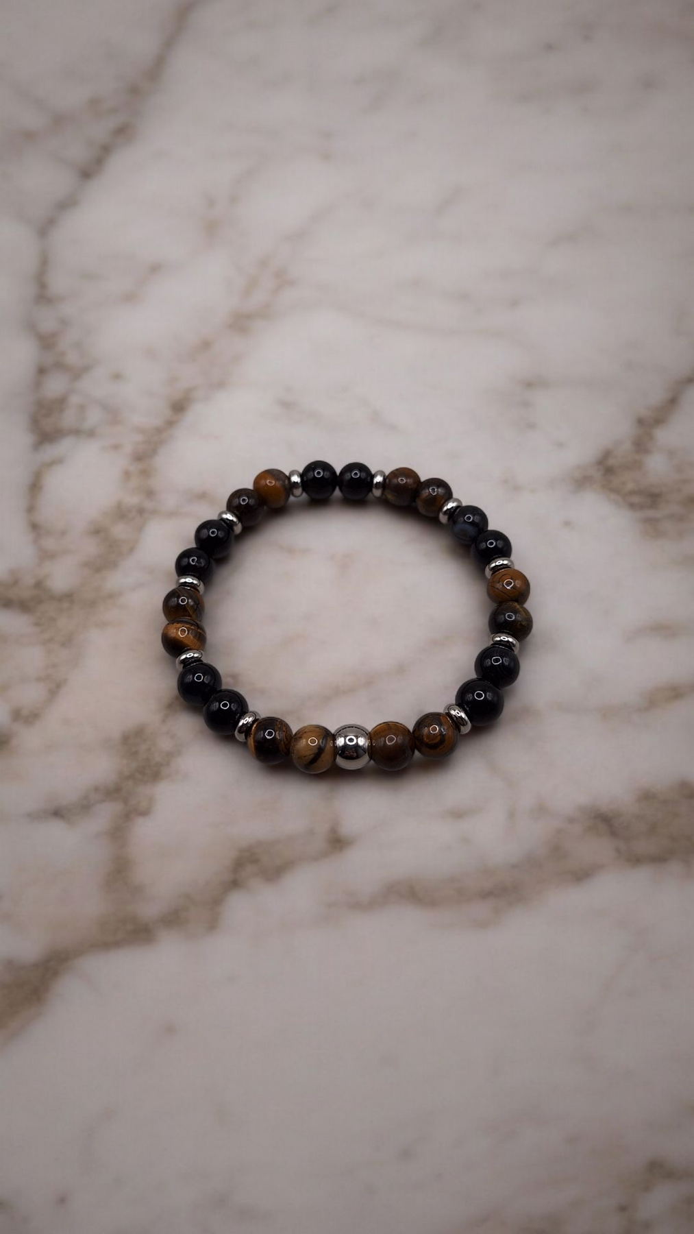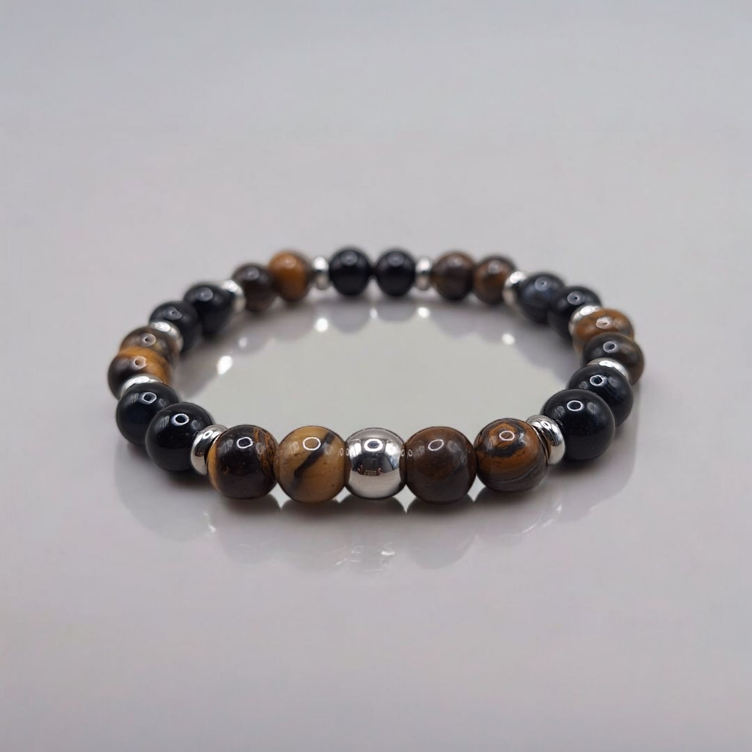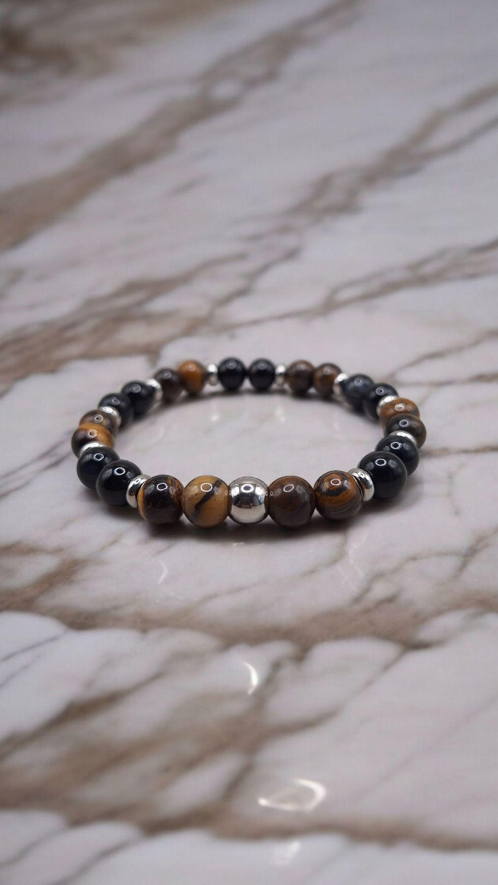 Step into confidence and boldness with the Tiger-eye x Onyx bracelet. Combining the power of onyx and tiger-eye gemstones, stainless steel, and strong elastic, this stylish piece will elevate your style and empower you to stand out. Perfect for both men and women, feel confident and inspired with this beautiful bracelet!